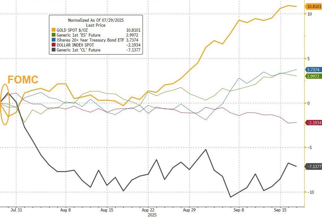 Since The Fed's last meeting (July 30th), a great deal of catalyzing events have occurred - from massive downward revisions to the so-called 'strong' labor market to a continued lack of (hyper) inflationary pressure from tariffs; and from a decline in geopolitical uncertainty and trade policy uncertainty offset by a much-decried by MSM rise in fears over Fed 'independence'.