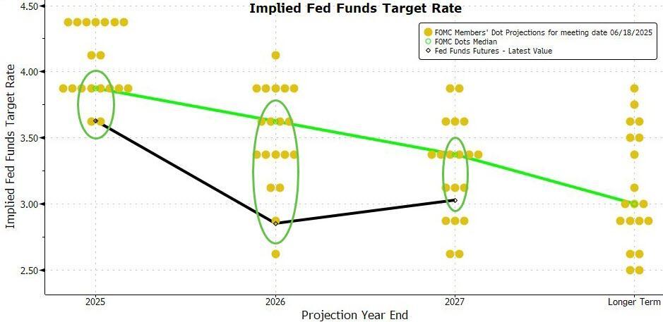 And before we get the headlines, bear in mind that the market is dramatically more dovish than the current (old) dots from The Fed. Today we get a refresh that will likely see the median dots decline (dovishly)...