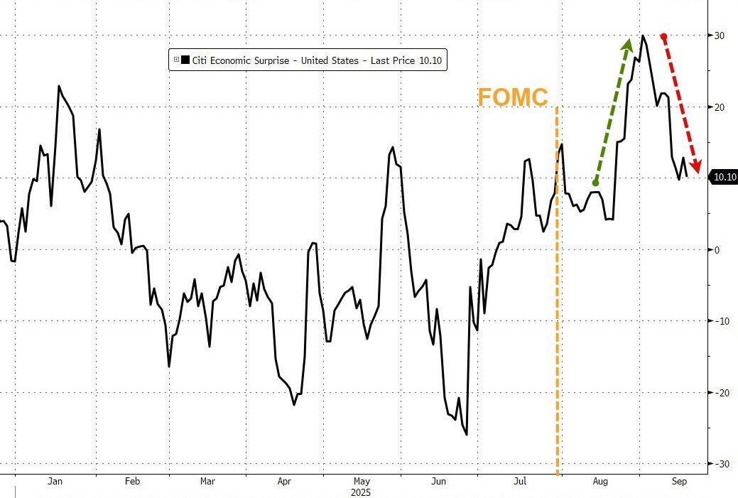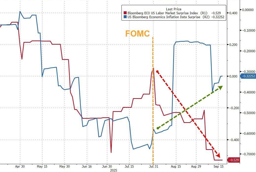 But we do note that 'inflation' has surprised to the upside since the last FOMC (while the labor market has dramatically surprised to the downside)...