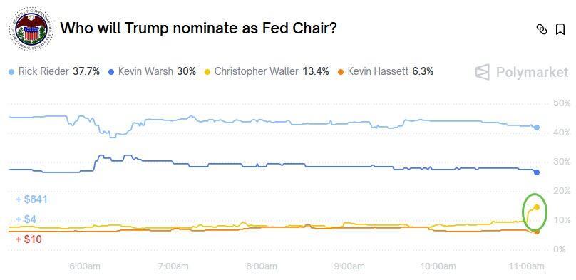 Which prompted a jump in the odds of Waller getting The Fed Chair job...