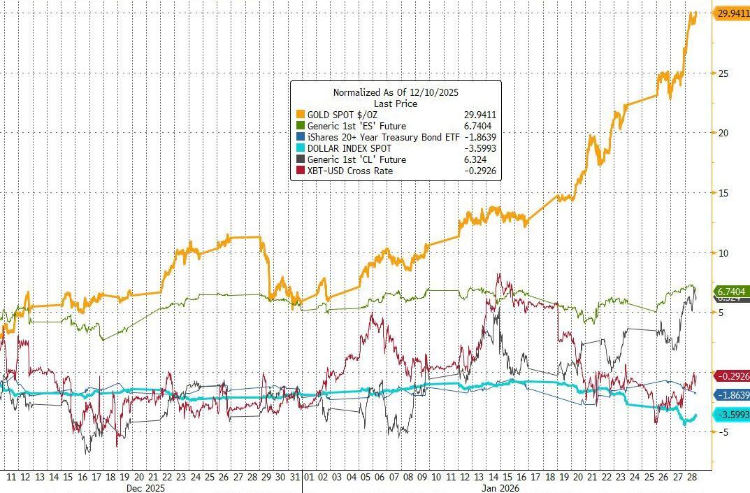 All of which has sent the dollar tumbling and gold exploding higher (while stocks rallied and bonds sold off)...