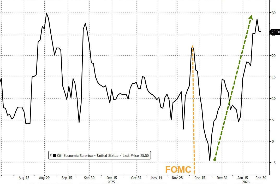 Since the last FOMC meeting on Dec 10th (which resulted in a dovish-er than expected 25bps rate cut and statement), US macro data has surprised significantly to the upside...