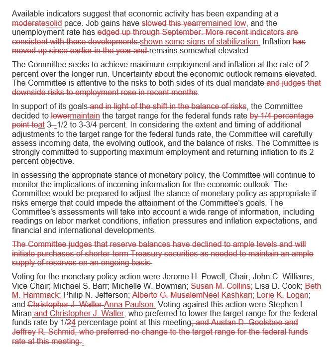 Fed removes language from statement that had noted “downside risks to employment rose in recent months”