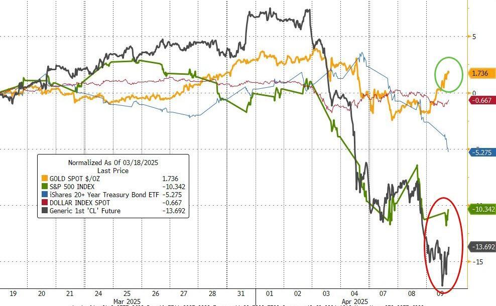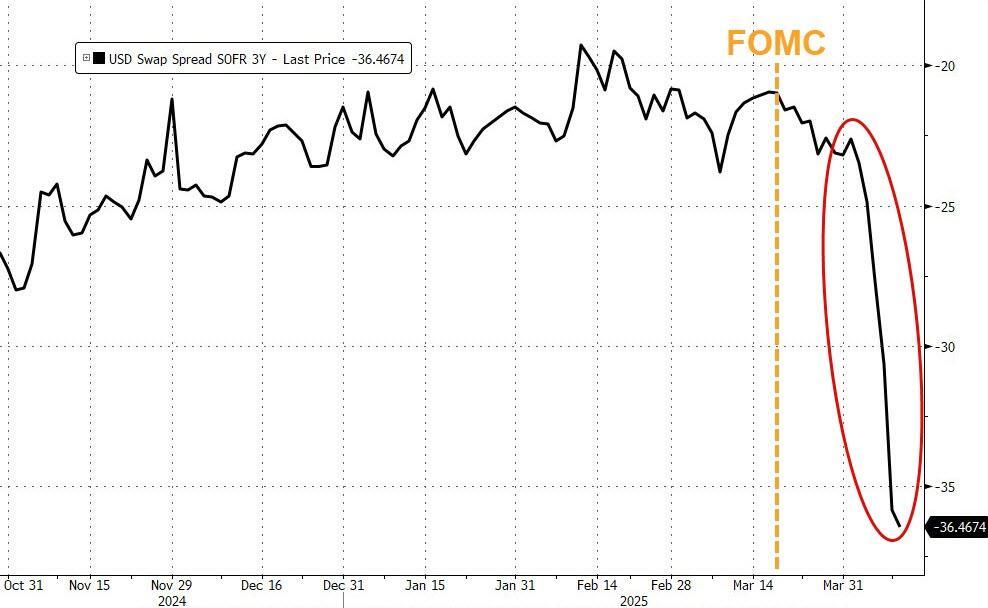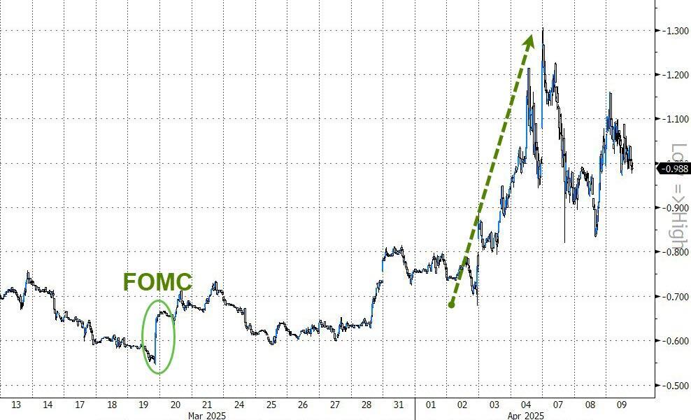 A lot - and we mean a lot - has happened since the last FOMC meeting on March 19th. Bonds, stocks, and commodites have colppased; gold has made solid gains and the dollar is unchanged as Trump's 'Liberation Day' malarkey smashed the punchbowl...