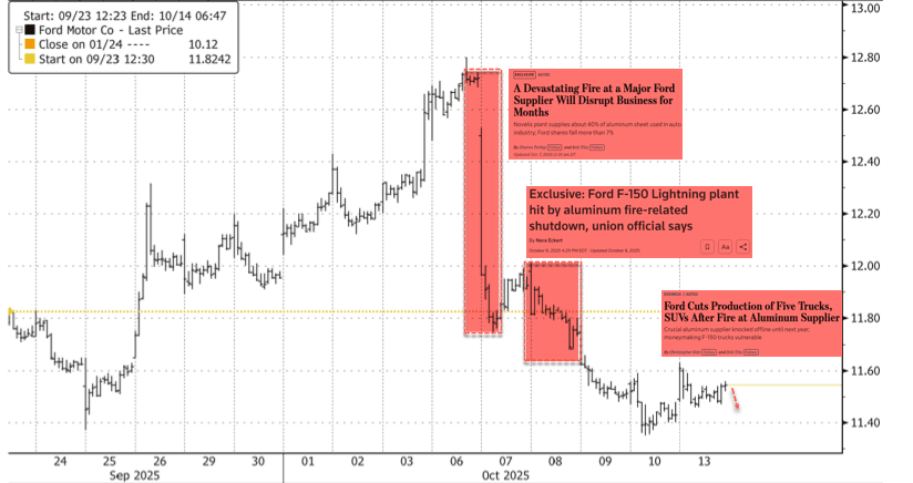 Some context about the Novelis fire at its Oswego plant: A Sept. 16 fire destroyed the building housing the hot mill, rendering the plant inoperable until at least early 2026. This part of the facility is where sheet aluminum used by the auto industry is produced. It supplies 40% of all aluminum sheet used by U.S. automakers, making it a very critical production node for America's auto industry. WSJ noted that Ford is the mill's largest customer.