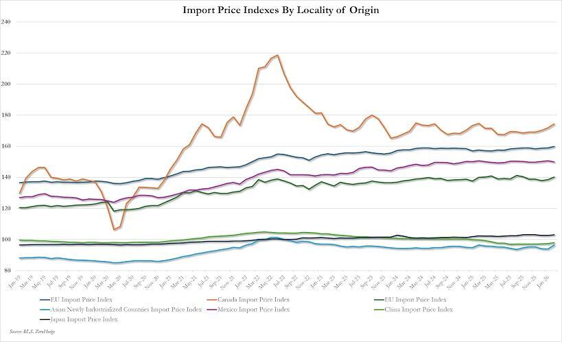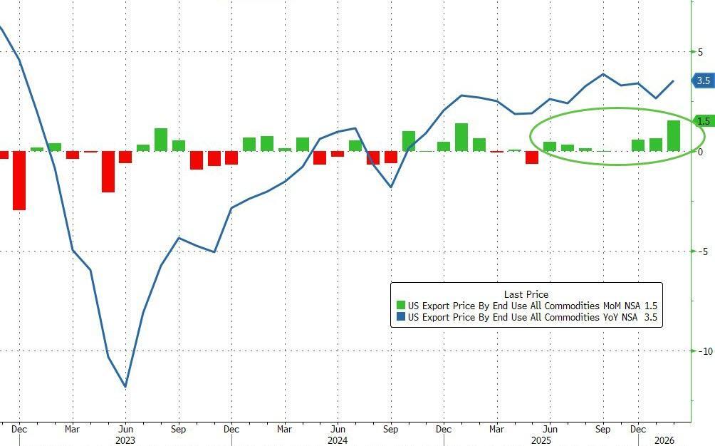 Export prices surged 1.5% MoM - the biggest jump since March 2022 (Russia-Ukraine war) with prices up 3.5% YoY (highest since Sept 2025)