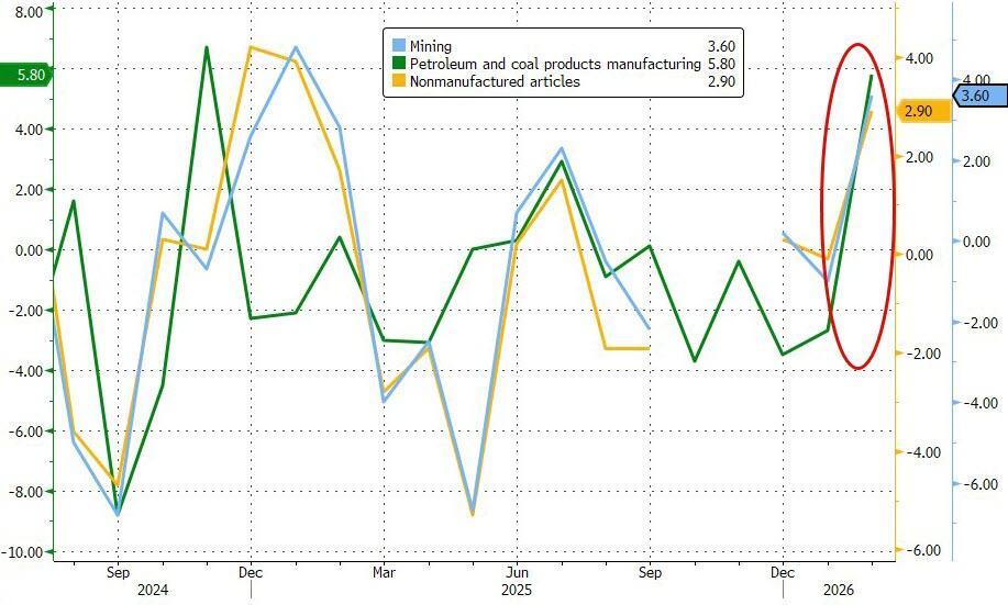 Under the hood, Petroleum, Mining, and Non-manufactured articles were the biggest drivers of the MoM surge in import prices...