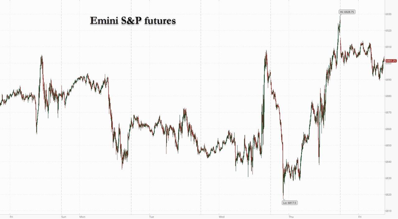 Fed speakers include Philadelphia’s Paulson (8am), Cleveland’s Hammack (8:30am) and Chicago Goolsbee, who dissented from Wednesday’s decision in favor of no change (10:35am); US economic calendar is blank, with several delayed releases scheduled for next week