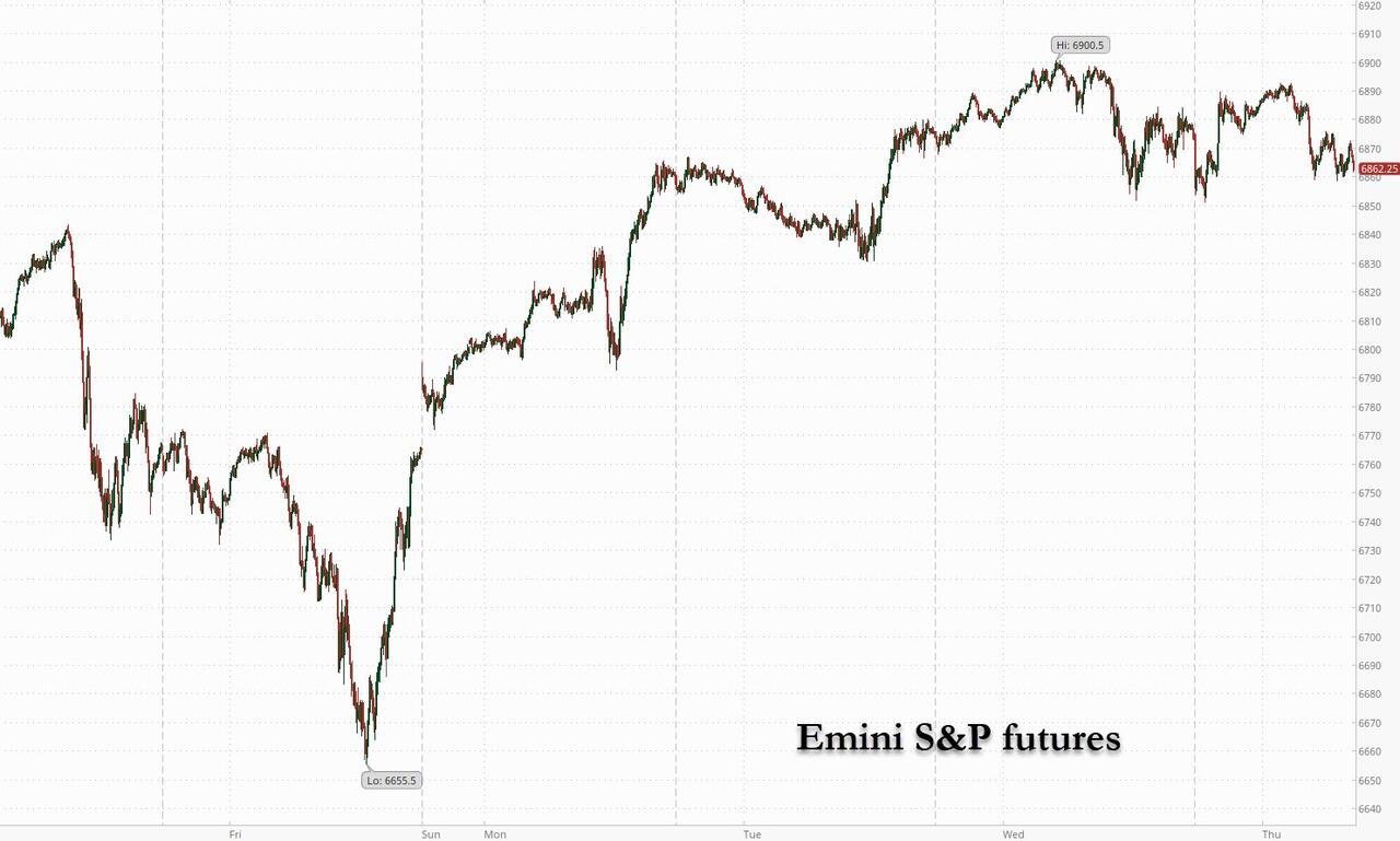 In commodities, gold climbs by $42 to $4,237/oz while silver gains 1.6% to ~$54, nearing its record high. Oil prices steady after the drop seen Wednesday, with the IEA once again raising its surplus estimate. Brent climbs 0.2% to $62.84/barrel.