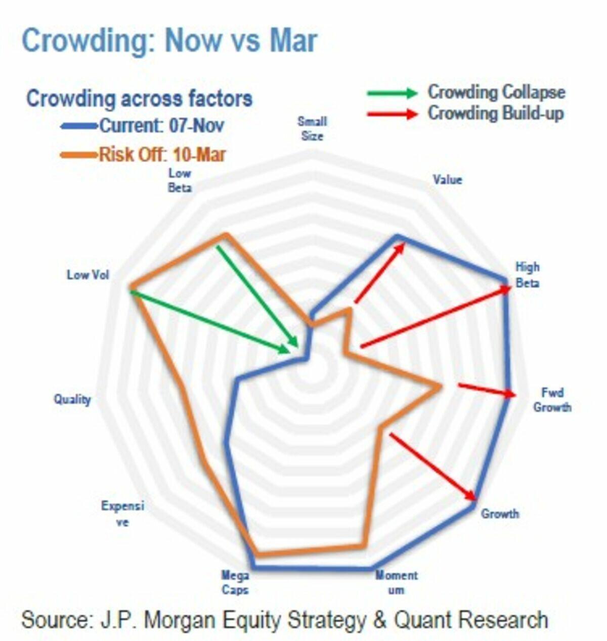According to JPM, hedge fund positioning suggests room for a rally into the year end, though sector rotation indicates caution emerging over this year’s AI euphoria.