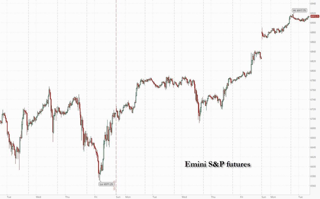 Overnight, Trump continued his trade tour of Asia and praised Japan’s new PM; Trump hailed the alliance between the US and Japan while the two nations pledged cooperation on defense and shipbuilding. Separately, Goldman’s Solomon, speaking at an investment summit in Saudi Arabia, said he expects the “incredible” pickup in M&A and IPO activity to continue, while recent issues in credit markets have been one-offs. BlackRock CEO Larry Fink said at the same event that the US is the place to be overweight for at least the next 18 months.