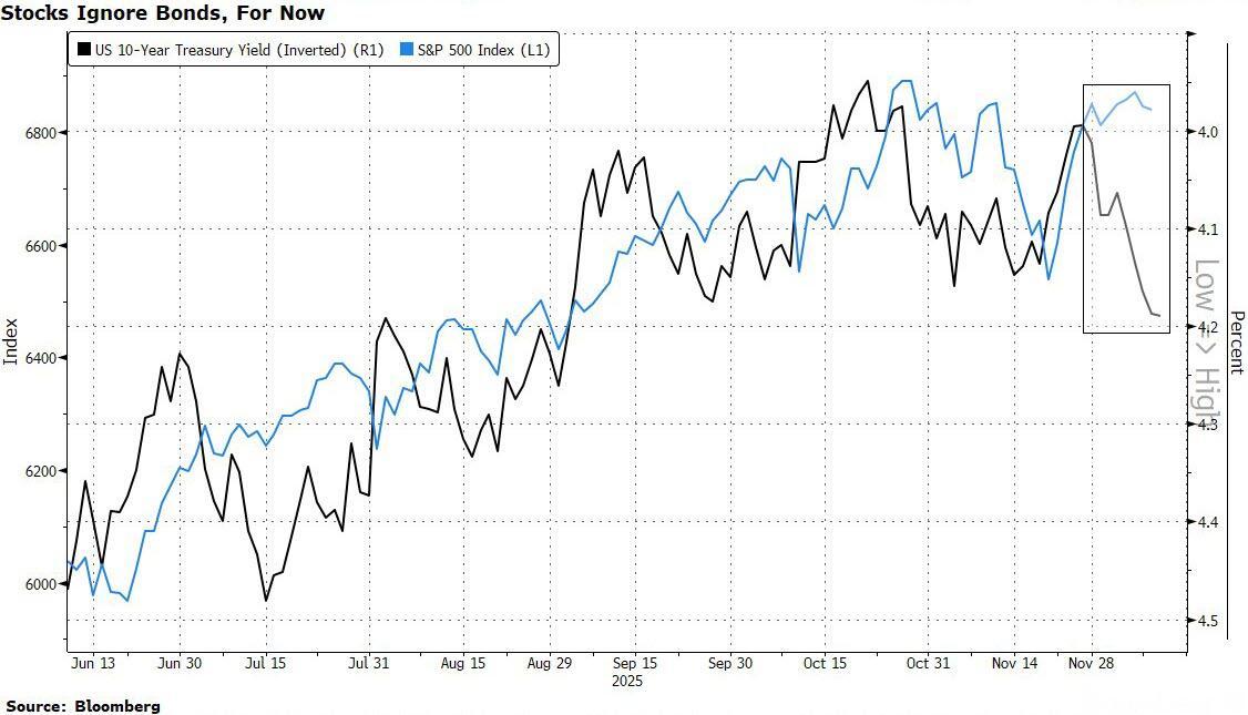 Oracle’s earnings will also help set the tone for the final few weeks of 2025: The stock is down about 33% in three months, with investors increasingly concerned about its high leverage and an AI bubble. Still, Andrew Cole, head of multi-asset investing at Pictet Asset Management, said he doesn’t think the AI trade is over-owned and that he’s “happy” to be overweight US stocks. Eslewhere, Bloomberg reported that Elon Musk’s SpaceX is said to be pushing on with plans for an IPO that would seek to raise significantly more than $30 billion, targeting a valuation of about $1.5 trillion for the entire company. AI memory chipmaker SK Hynix, meanwhile, could close its valuation gap with Micron via a potential New York listing.