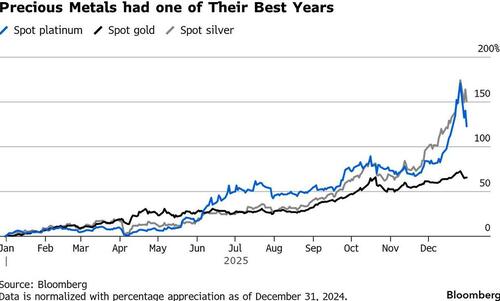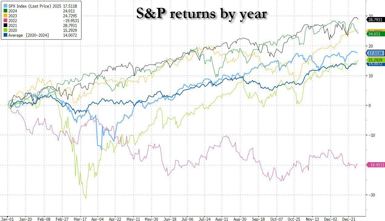 Investors have reaped strong returns this year in a market that has been powered by optimism about the vast economic potential of artificial intelligence. Of course, as Bloomberg notes, it hasn’t been a smooth ride, though, with traders weathering swings triggered by US trade policies, geopolitical tension and concern over lofty valuations. And while many expected a Santa rally, the year’s momentum faded in the final days of December, as traders delay big decisions until after the holiday period, having already banked strong returns. The post-Christmas losses pared the S&P's 2025 advance to 17%, just shy of the 20%+ gains 2021, 2023 and 2024.