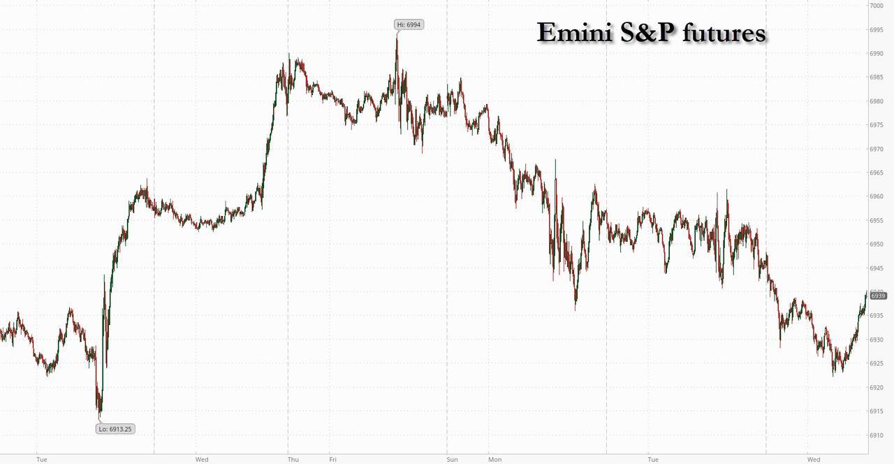 In premarket trading, Mag 7 stocks were mostly lower (Nvidia +0.4%, Tesla +0.3%, Microsoft -0.1%, Apple -0.2%, Amazon -0.1%, Meta -0.1%, Alphabet -0.3%). With a 66% year-to-date rally, Alphabet leads the group in 2025.