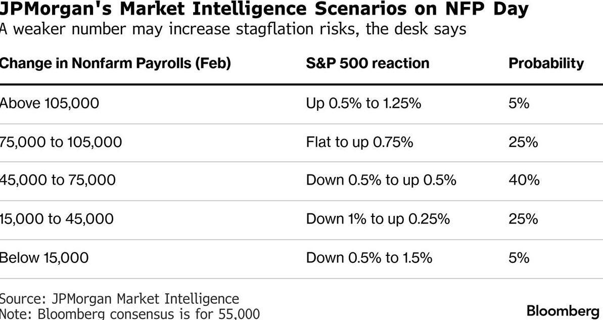 “For this print, the stronger the better given the increase in inflation expectations due to energy prices,” the JPMorgan Market Intelligence desk led by Andrew Tyler says. “A weaker number will increase rate cut expectations, but the risk is stagflation in the near-term given the expected increase in inflation.”