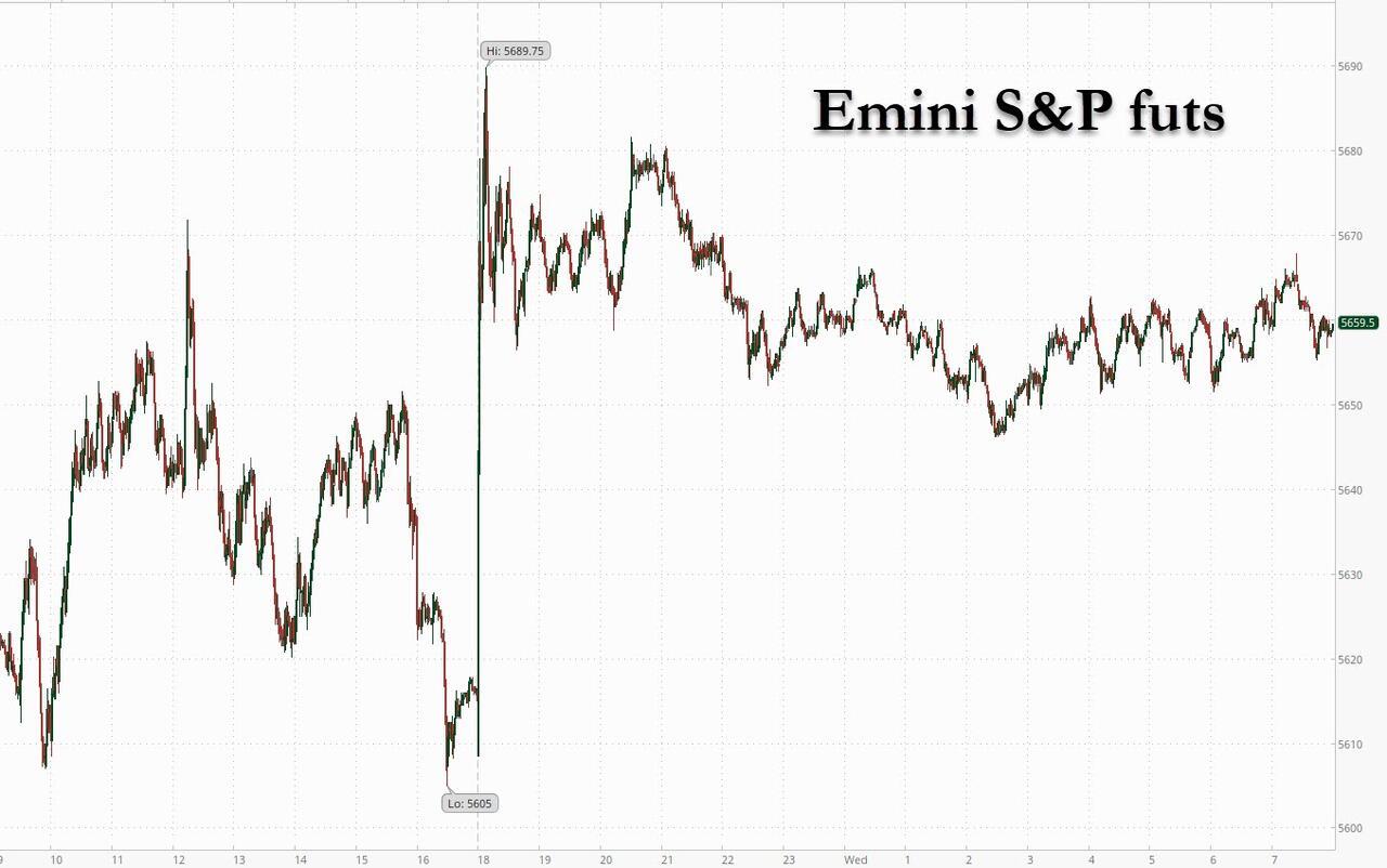 US equity futures are higher while global market are mixed ahead of the FOMC decision later today, following news tariff talks between the US and China will begin, and after a surprise stimulus by China. As of 8:00am, S&P and Nasdaq futures are 0.6% higher (though off the highs) on reports Bessent will meet Chinese Vice Premier He Lifeng in Switzerland this weekend in the first confirmed talks between the two superpowers. Bessent later said on Fox News that the meeting will be more about de-escalation than any sort of big trade deal. In premarket trading Mag7 names and Semis are leading the markets higher while RTY appears to be squeezing into outperformance. Cyclicals are poised for a strong session, too. Overnight China’s PBOC cut its reverse repo rates and lowered lender reserve ratio to help stimulate growth. India conducted military strikes in Pakistan in which Pakistan said it shot down five Indian jets. Attention shifts to the Powell and the FOMC at 2pm which is expected to yield no surprises as the CB preaches patience. Focus during the 2:30pm press conference will be on any commentary on how long Powell intends to wait for further clarity re tariffs/impacts (reminder no SEP). Bond yields are higher alongside a stronger USD which snapped three days of declines as the Taiwan Dollar slid for a second day. Commodities are bid higher led by Ags and Energy; gold/silver are modestly lower after another powerful breakout earlier this week.