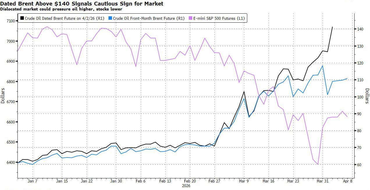 Oil remains in focus, with WTI crude rising to the highest since June 2022. Meanwhile, Bloomberg Intelligence analysts expressed caution over the wide gap between the Brent spot price, which reflects expectations of a resolution, and Dated Brent, which represents actual cargoes assigned specific loading dates. At above $140, the latter signals acute spot scarcity.