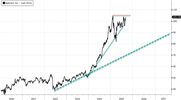 These questions come as Walmart shares have gained 15% year-to-date, though the stock remains below the peak reached in mid-February.