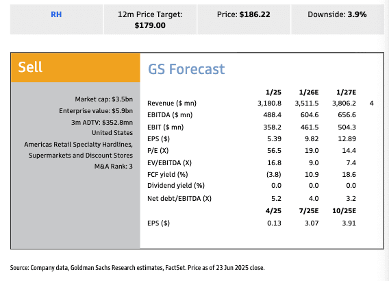 RH (formerly Restoration Hardware) was downgraded from Neutral to Sell