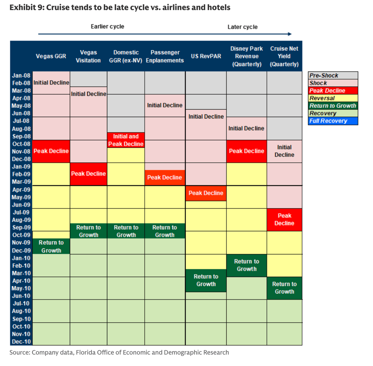 So there was a full 18 to 24 months lag versus the late-cycle cruise downturn and the early-cycle pullback in Vegas and airlines.