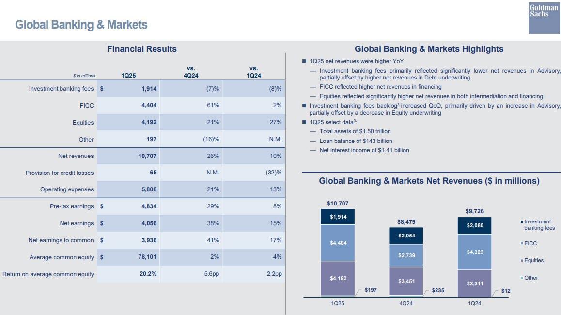 - Global Banking & Markets net revenues $10.71 billion, +10% y/y, beating estimate $10.42 billion