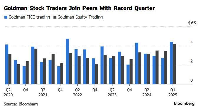 Goldman's Q1 results build on the sector’s momentum from last week, when banking peers including JPMorgan and Morgan Stanley also notched record stock-trading hauls for the period. And they follow a record year for Goldman in 2024, when the New York-based bank lifted its revenue in the division by almost 50%.