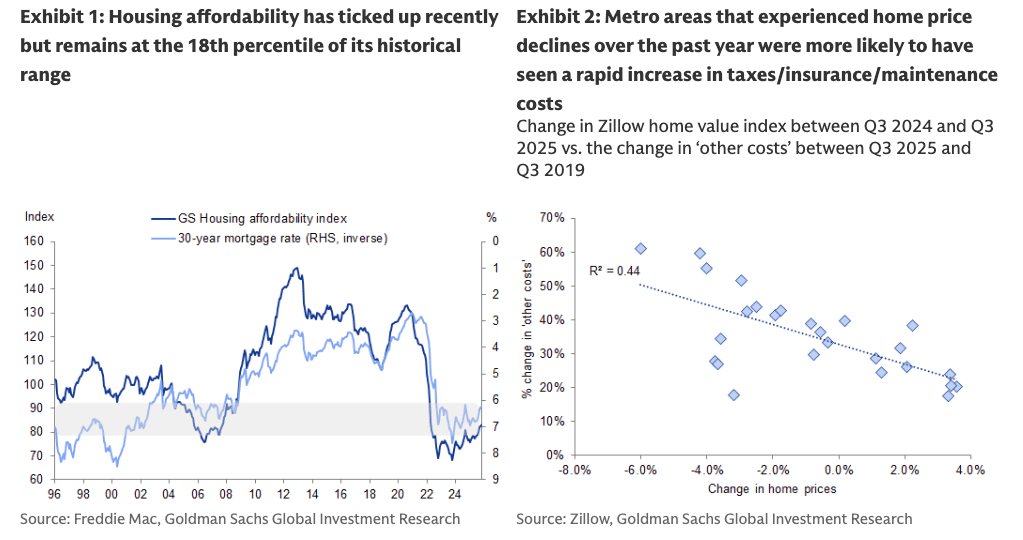 Goldman analysts led by Arun Manohar have some bad news on the housing affordability front: even with lower mortgage rates and slower home-price growth, it's largely an "illusion of affordability" once other ownership costs, such as taxes, insurance, and maintenance, are factored in.