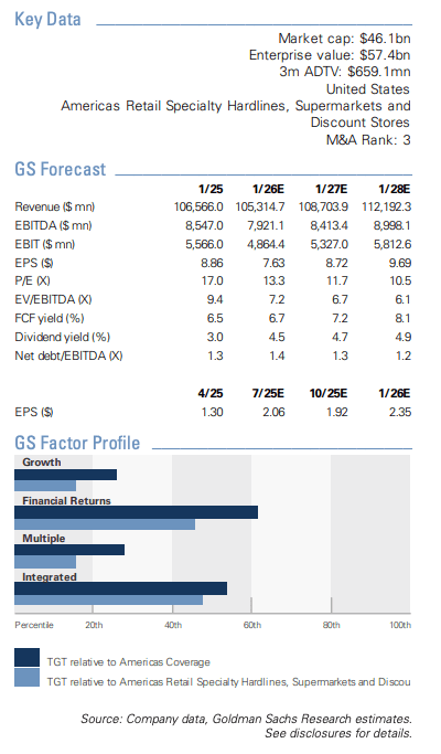 Looking ahead to Target's upcoming Q2 earnings (expected release Aug. 20), McShane forecasts same-store sales to fall by 3%, slightly better than the -3.1% LSEG Data & Analytics consensus estimate. She also expects an operating margin of 5.3% (vs. 5.1% consensus) and earnings per share of $2.06, modestly above the consensus estimate of $2.02. Her rating is "Neutral" on the stock with a 12-month price target of $90.