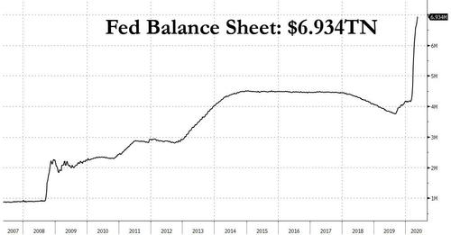 But this was only the case when the Fed was buying a massive $75 billion in TSYs per day in the late March crash, when Powell dumped a monetary nuclear bomb on the market to stabilize the biggest panic selling an entire generation of traders had ever seen, and nearly doubling the Fed's balance - which is now just shy of $7 trillion, in a few months:
