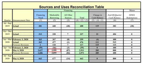 Update: In implicit confirmation of everything said below, in his 60 Minutes appearance, Jerome Powell said that "There’s a lot more we can do. We’ve done what we can as we go. But I will say that we’re not out of ammunition by a long shot,” he said. Powell noted the Fed can increase its emergency lending programs and make monetary policy more supportive through forward guidance and by adjusting the Fed’s asset-purchase strategy. Which, as explained extensively below, is precisely what the Fed will have to do: by as much as $3 trillion in additional QE just to offset the flood of new debt coming to the market in the next 6 months.