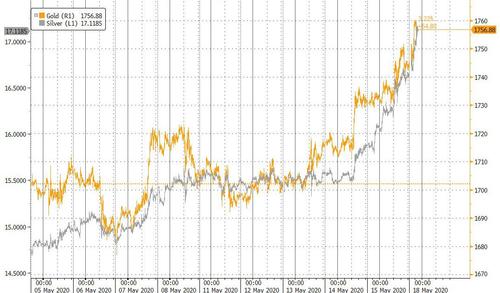 To give Powell the credit, at least he was being somewhat honest: unlike Bernanke who claimed the Fed does not "print" digital bills, Powell no longer felt compelled to make the obvious lie. And judging by the ongoing surge in gold and silver overnight, the market seems to appreciate Powell's honesty.