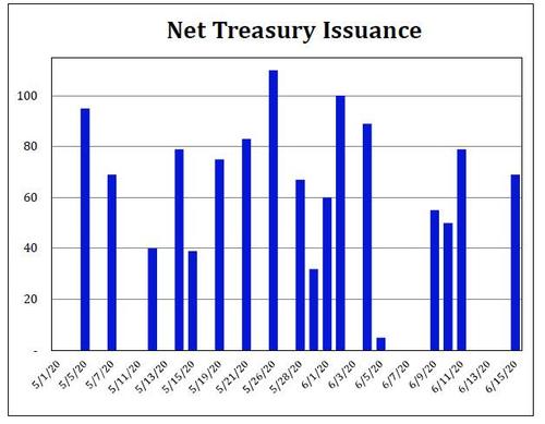 There's just one problem: $30BN per week in TSY monetization is nowhere near enough to consume the trillions in Treasury issuance that is about to hit. In fact, all else equal, the Fed will very soon have to find a pretext to aggressively ramp up its treasury purchases.