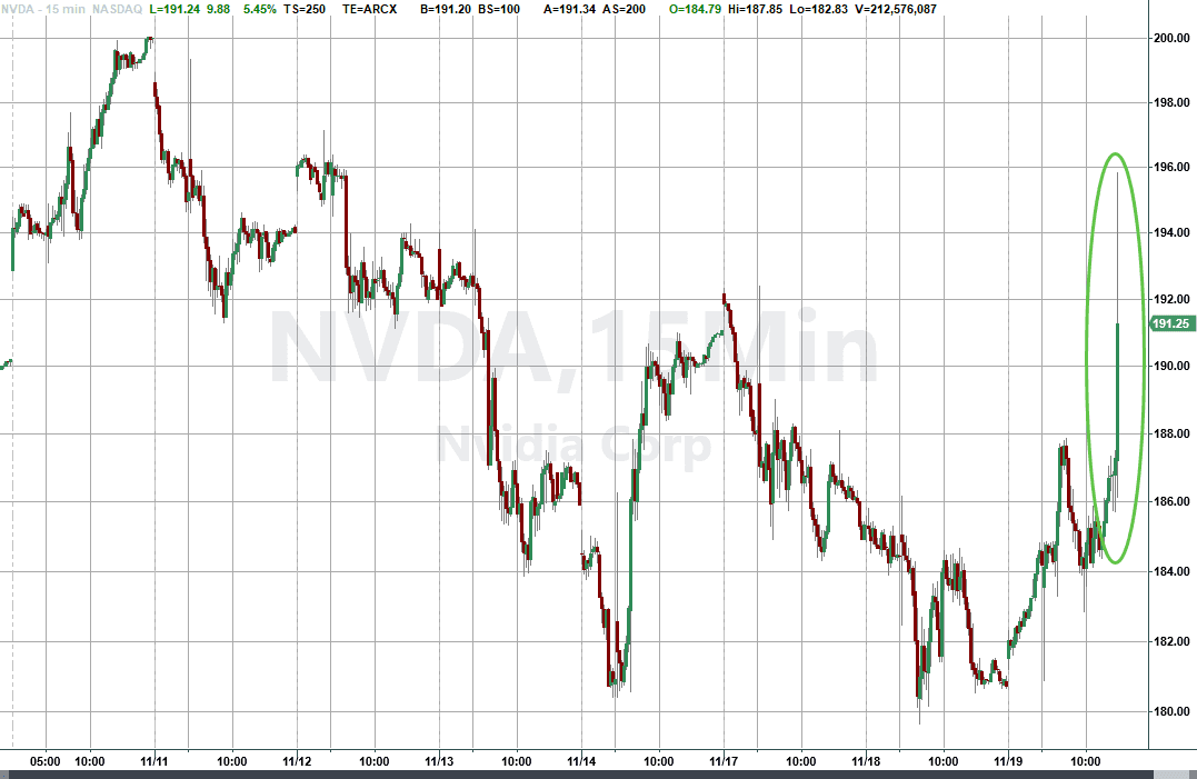 Yet while Nvidia shares are sharply higher, the move reverses only part of a slump that saw the stock slip about 10% below a record high set at the end of October.