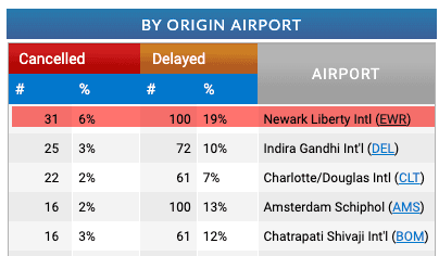 The flight-tracking website FlightAware shows that EWR has about 100 flights delayed so far this morning.