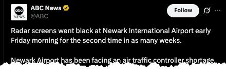 Hours later, around 1000 ET, reports hit the wires that the FAA issued a ground stop at EWR because of runway construction, staffing shortages, and equipment troubles, according to local media outlet PIX11.
