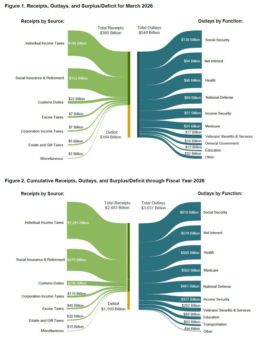 March tax receipts totaled $385 billion, up $17 billion or 4.7% from March 2025...