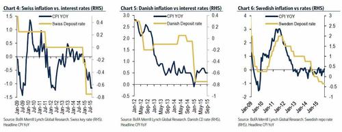 Several years ago, when conventional wisdom dictated that to push inflation higher and jumpstart lethargic economies, central banks have to push rates so low as to make saving punitive and force consumers to go out and spend their hard earned savings, several central banks including the ECB, SNB and BOJ crossed into the monetary twilight zone by lowering overnight rates negative.