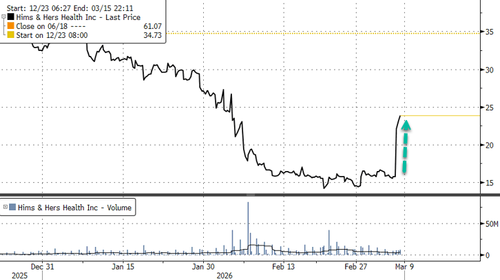 As we noted over the weekend, the move is very surprising because NOVO and HIMS have been locked in an epic GLP-1 feud for months. Just last month, Novo sued HIMS over a copycat Wegovy pill and patent infringement tied to Ozempic and Wegovy. Even the head of the FDA recently stated that telehealth firms were put on notice about copycat GLP-1s.