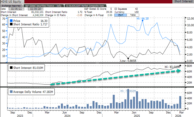 And positive it is for the heavily shorted stock, with 39.1% of its float short, or 81 million shares.