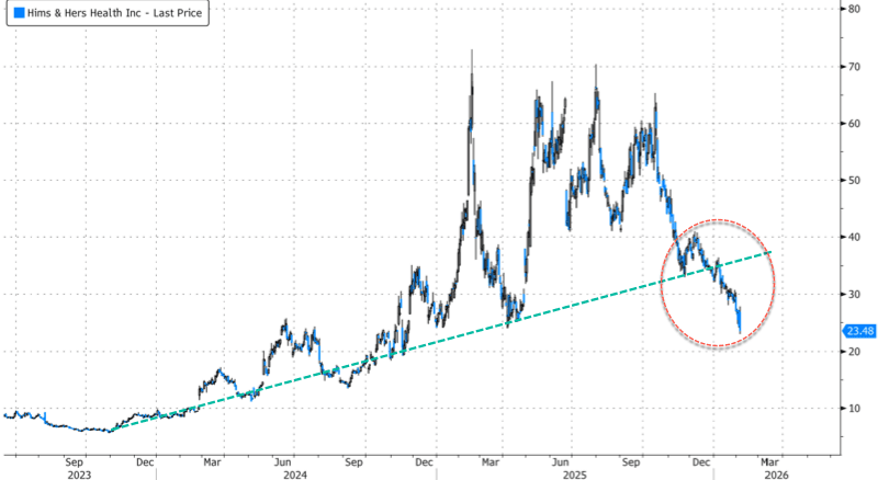 On Tuesday, Novo reported a disappointing full-year outlook, warning of a tough year in the GLP-1 market. Besides HIMS, the company faces competition from Eli Lilly's Zepbound, gaining ever-larger market share in the U.S.