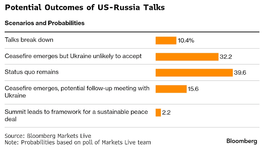 Analysts at Rane suggest the Friday summit "risks side-lining Ukraine, fracturing Western unity and creating space for Russia to delay sanctions, consolidate battlefield gains and promote a US-Russia framework that advances Russian strategic interests." Markets will likely focus on several factors:
