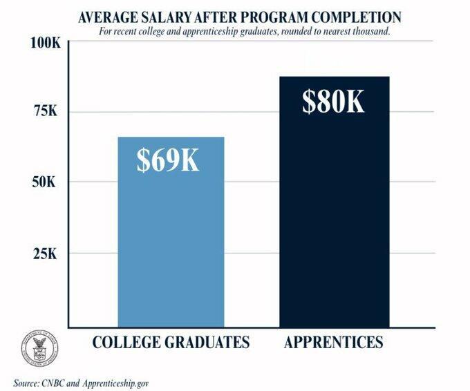 DoL data shows the average salary after completing a trade program is over $80,000, compared with $69,000 for college graduates. Many of these kids hold pointless woke degrees and carry insurmountable student debt. Increasingly, these universities are sliding into a dark pit of irrelevance ahead of the 2030s.