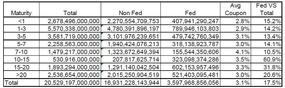 The Fed owns $2 trillion of bonds maturing in less than 7 years versus “only” $1 trillion of bonds maturing 15 years or more.