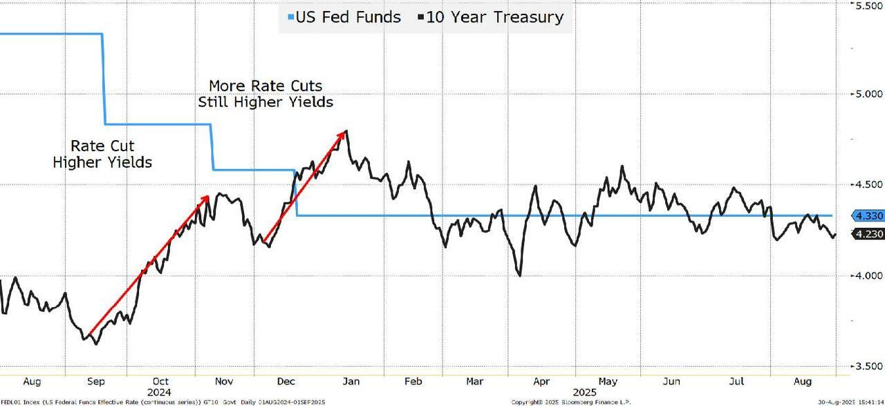If the Fed goes 25 or even 50 in September, the market will immediately move to speculate on the timing and sizes of the next cuts. Especially those who characterize any cut as being politically pressured. There will be just as much uncertainty about the path and intentions of the Fed after the cut, as before the cut. Realistically, no one thinks we will get one cut of 25 bps and be done, so the speculation about Fed independence etc., will still attract a lot of attention and possibly push yields higher.