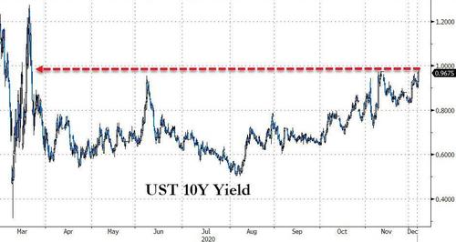 The timing is also notable, coming after Friday's disappointing jobs numbers, which caused the yield curve to widen even further, as the yield on the 10-year approaches the 1% mark for the first time since March.