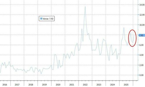 Year-ahead expectations about households’ financial situations also deteriorated with a smaller share of respondents reporting that their households expect to be better off a year from now and a larger share reporting they expect to be worse off.