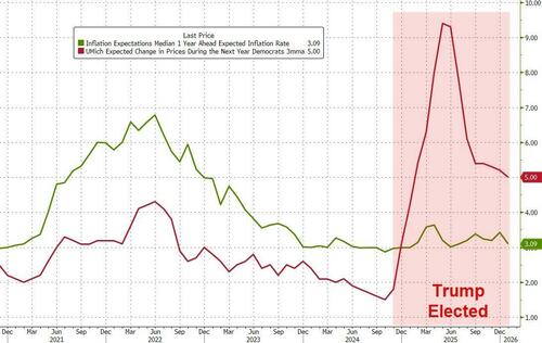 Going back to where we started above, why was it that for the entire term of President Biden, Democrats surveyed by UMich saw future inflation expectations dramatically below that of the NYFed's survey respondents...