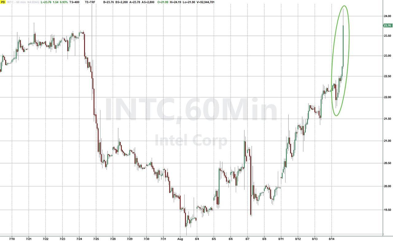 Needless to say, news of the proposed minority investment sent Intel shares soaring, erasing all of the company's post-earnings losses.