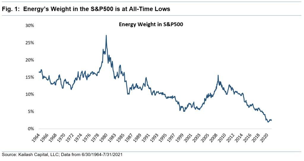 From a sector perspective, energy has never had such a low weighting in the S&P 500. The chart below (the longest time frame we could find) only goes to mid-2020.
