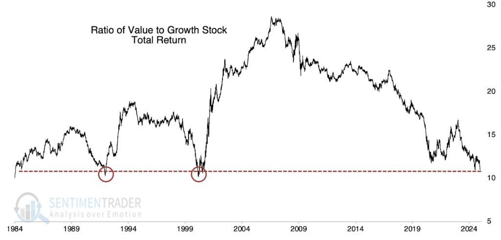 In the US, “value” as an investment theme relative to “growth” is more or less at a 40-year low.